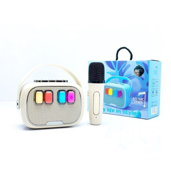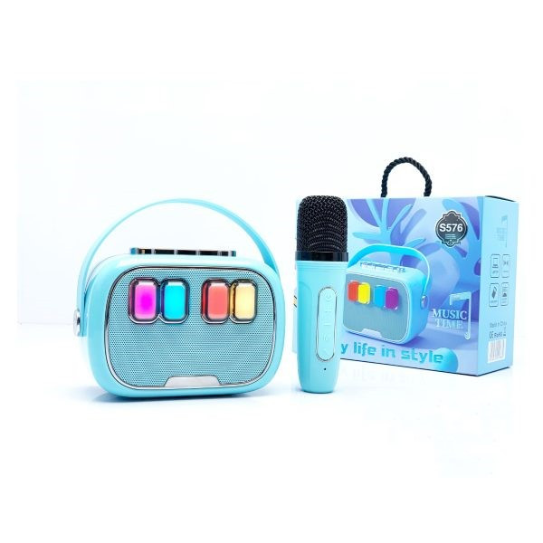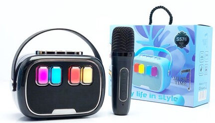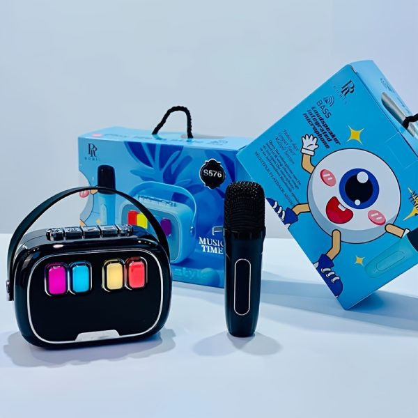 اسپیکر بسیار با میفیت از برند ROMIS مدل S576 یک اسپیکر بلوتوثی کامل دارای دو باند 3.5 وات و قابلیت پشتیبانی از بلوتوث ، فلش ، مموری و ای یو ایکس را دارد ، همچنین این اسپیکر دارای میکروفون بیسیم شارژی همراه هستش که حتی میتواند صدای شما را به چندین حالت مختلف تغییر دهد ، رقص نور و دکمه های کلاسیک و همچنین بدنه با کیفیت ساخت بالا از ویژگی های این اسپیکر است