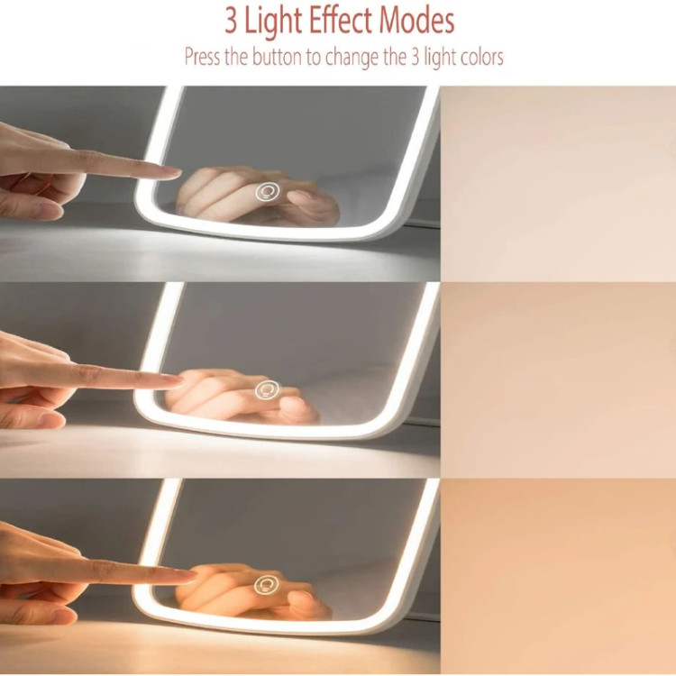 دارای سه حالت تنظیم نور: نور سفید (white light)، گرم (warm light) و سفید گرم ( warm white light) مناسب برای آرایش روزانه، مسافرت، ضبط ویدیو و … حالت محافظت از چشم طراحی سوئیچ کنترل لمسی دارای ویژگی بزرگ نمایی